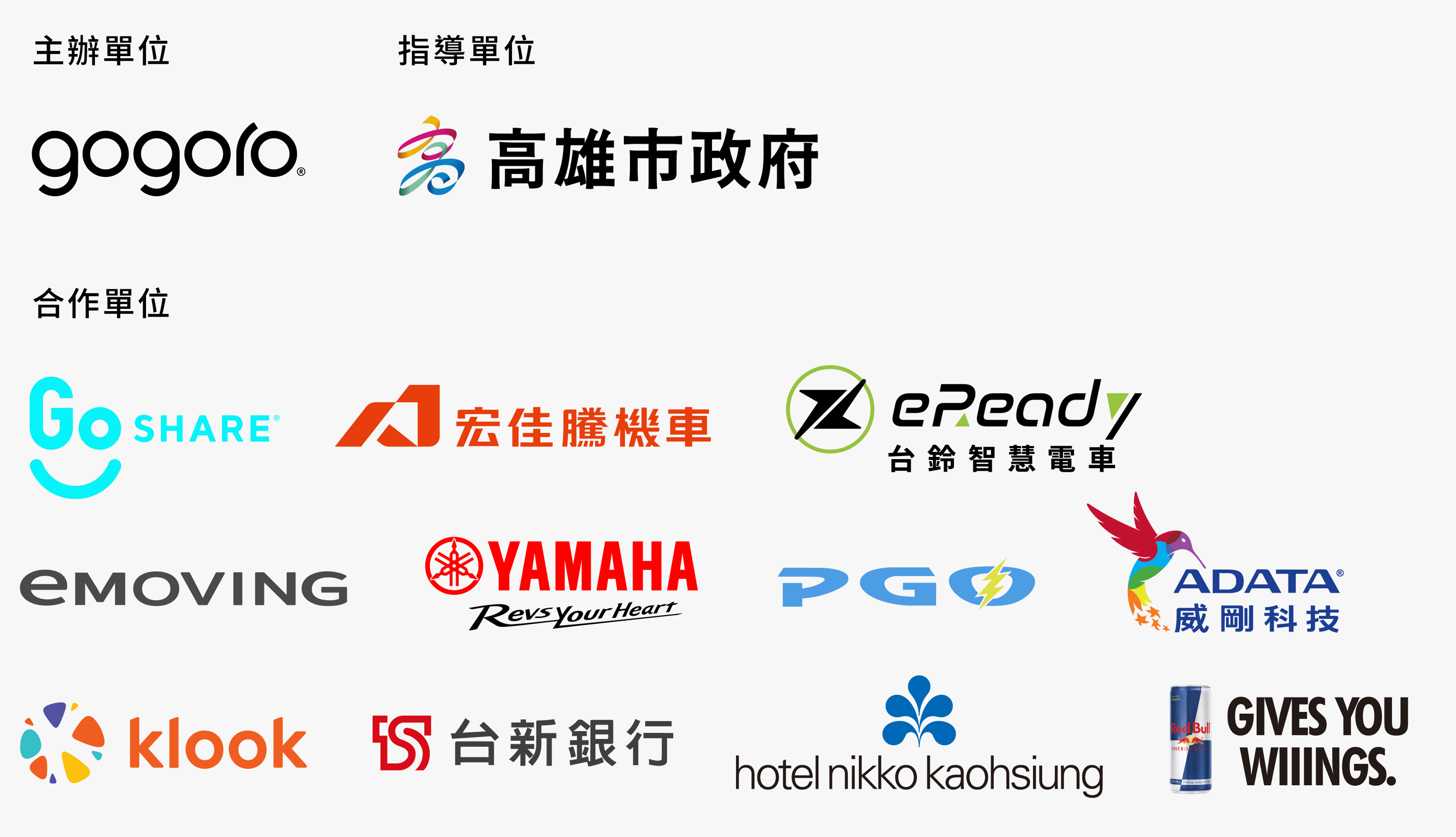 12. 若逢颱風或其他不可抗力之因素、天災、疫情,由主辦單位以參與者安全考量,決定是否取消,如活動因有任何變更或補充事項,將隨時公佈於 Gogoro 網站以及粉絲專頁公告為準。